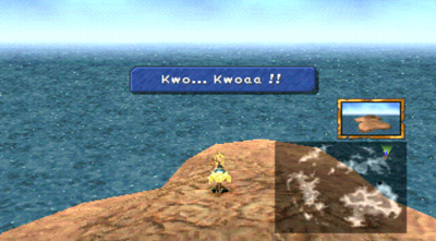 Rendez vous au Nord-Ouest de la carte du monde et rechercher une petite île. Sur celle-ci se trouve une faille que vous devez explorer à l'aide d'un PimentAnkou. Vous découvrez alors l'entrée du Paradis des Chocobos où se trouve déjà Méné. Montez au second étage afin de faire la connaissance de GroChocobo. Celui-ci demande à Choco de rester parmi les siens mais ce dernier souhaite venir plus tard. Sortez donc de cet endroit, il vous reste encore des trésors à trouver !