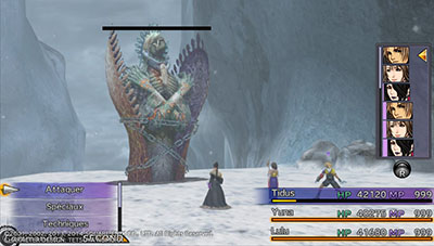 , fait son apparition. Ce dernier est de très loin l'ennemi le plus puissant de Final Fantasy 10. Pour ce combat, bien plus compliqué que les précédents (à l'exception des Magus en 3 vs 3), toute erreur se payera cash. Après rassurez vous, je vais vous aider à lui botter le cul bien comme il faut